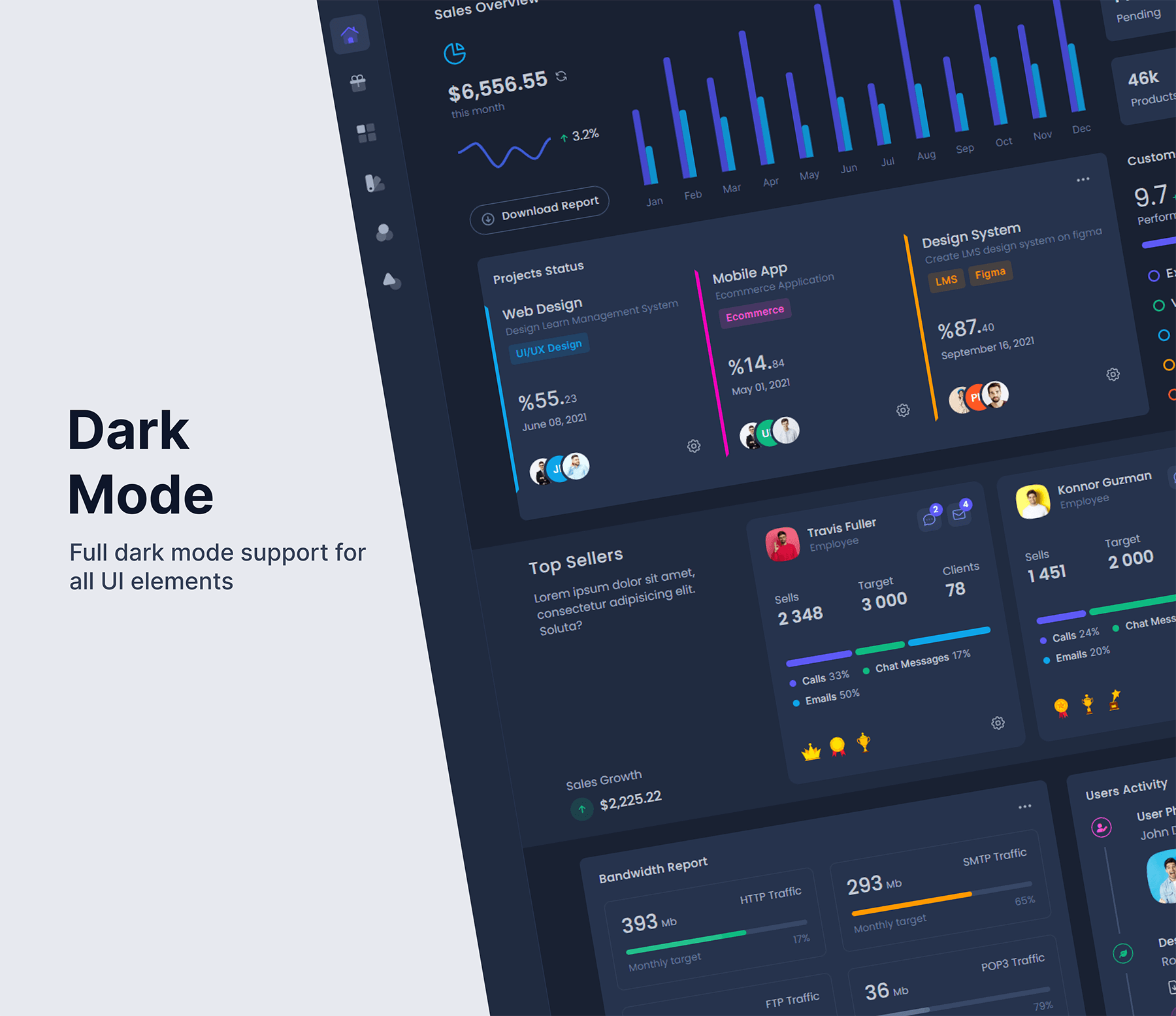 模板内置丰富且高质量的页面与组件,包括仪表盘、表单、表格、图表、权限管理、认证流程等常见后台场景,配合 Tailwind CSS 的原子化样式体系,可快速进行二次定制。Laravel 版本已做好基础结构拆分,逻辑清晰,便于直接接入真实业务数据,适合中大型项目快速落地。