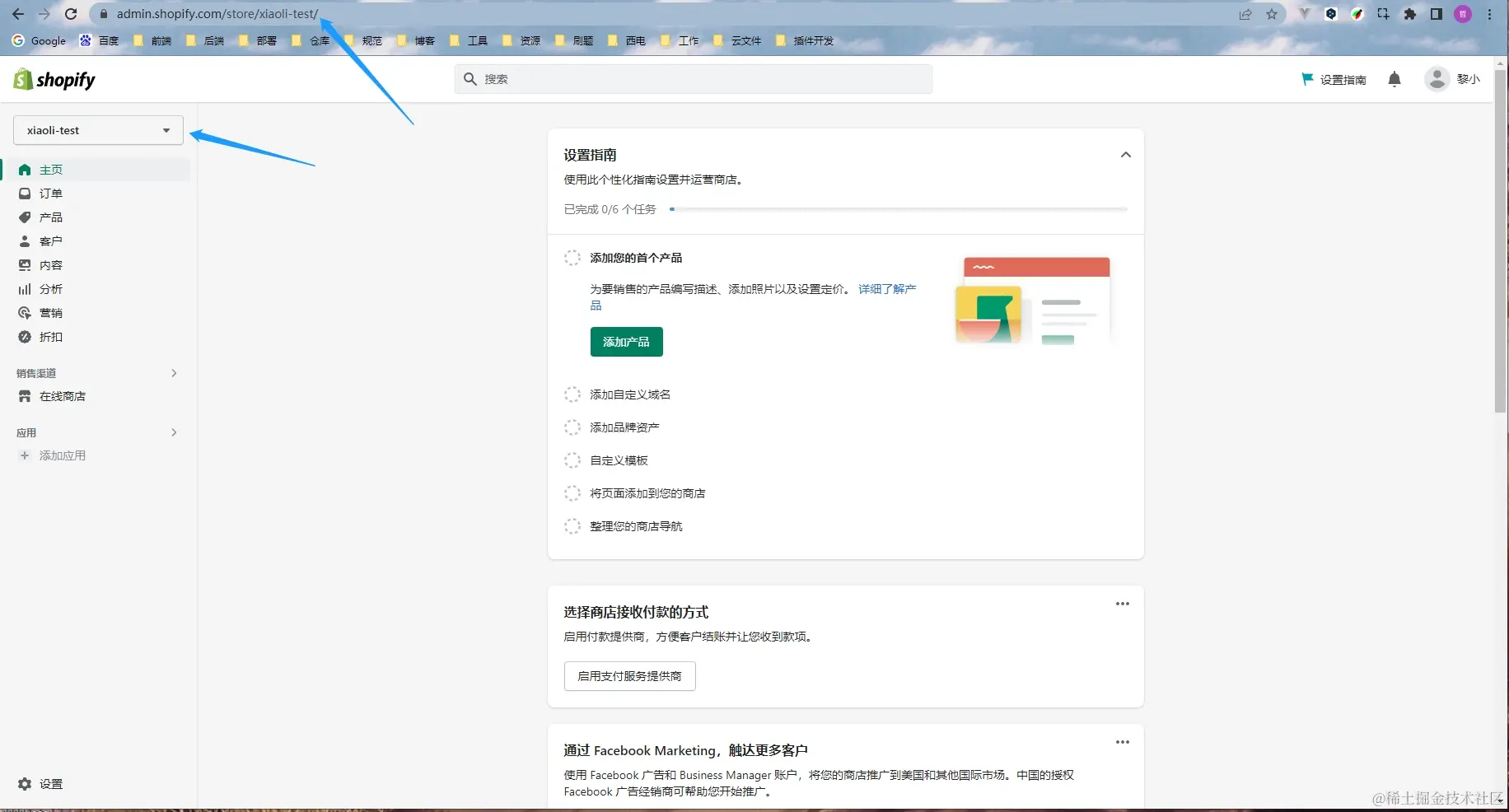 填入商店名称,尽量简短好记。点击右下角创建开发商店。创建完成后会跳转到商店(新创建的商店)后台。