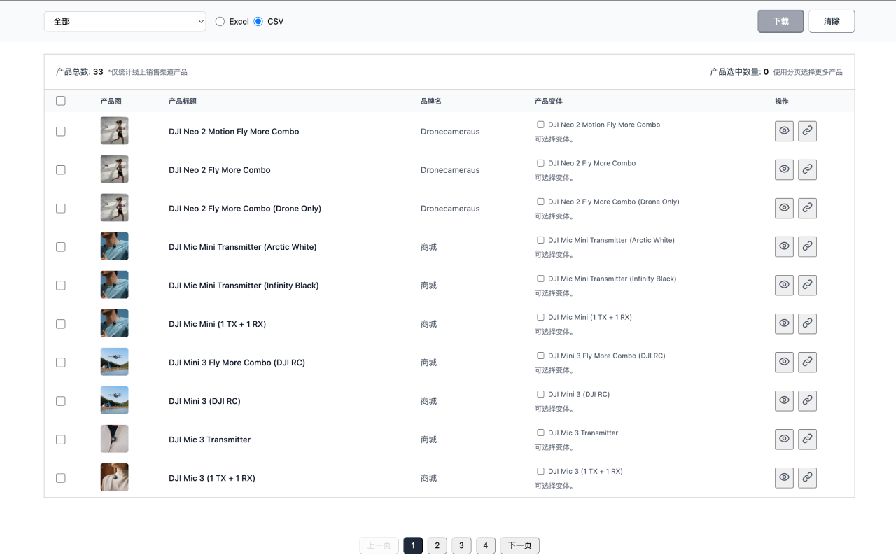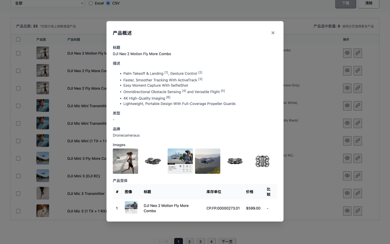 一键导出竞品的所有产品